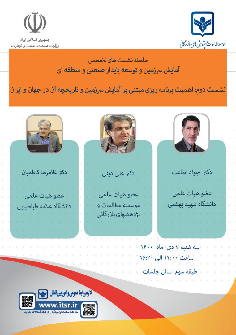 سلسله نشست های تخصصی سرزمین و توسعه پایدار صنعتی و منطقه ای (1400/11/12)