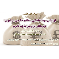 سخنراني علمي " ارزيابي سرمايهگذاري مستقيم خارجي در ايران: درسهايي براي شرايط پسا تحريم " برگزار شد.