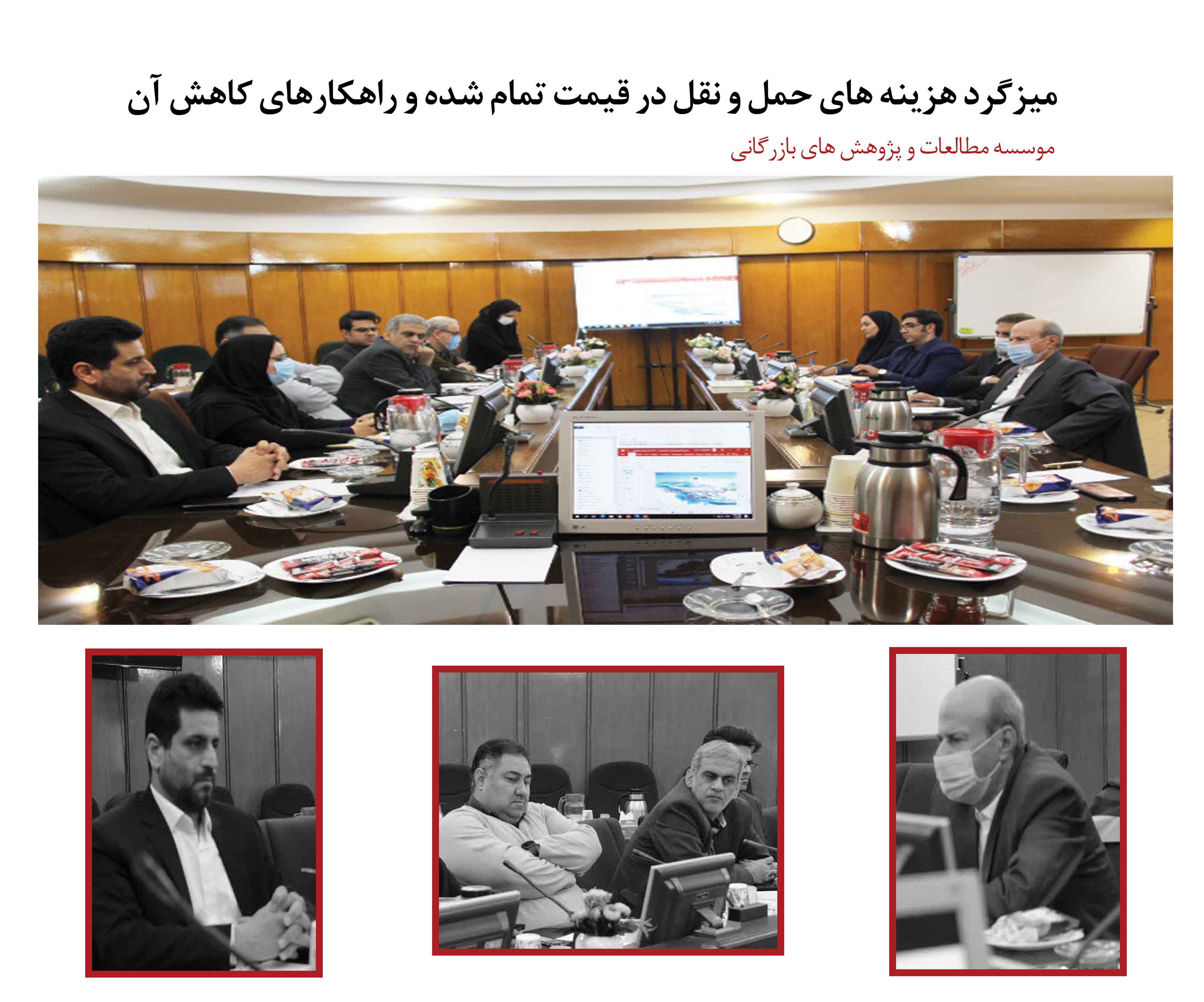اتاق فکر با موضوع "هزینههای حملونقل در قیمت تمام شده و راهکارهای کاهش آن" ، به ميزباني موسسه مطالعات و پژوهشهاي بازرگاني و با حضور دكتر سبحان نظری دبیر انجمن صنفی شرکتهای حملونقل ریلی و خدمات وابسته، مهندس محمود سالمی مشاور کمیسیون لجستیک و حملونقل اتاق بازرگانی، صنایع، معادن و کشاورزی ایران، جواد هدایتی مدیر کل دفتر ترانزیت و پایانههای مرزی و مهرداد حمداللهی مدیر کل دفتر حملونقل کالای سازمان راهداری و حملونقل جاده ای و مهندس کرمی کارشناس آن سازمان، دکتر مسعود فتحعلی رئیس بخش حملونقل ریلی مرکز تحقیقات راه، مسکن و شهرسازی و دکتر الناز میاندوآبچی عضو هیات علمی موسسه مطالعات و پژوهشهای بازرگانی برگزار شد.
