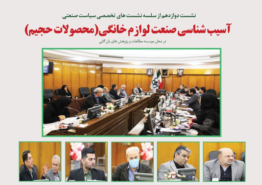 نشست دوازدهم از سلسله نشست های تخصصی سیاست صنعتی با عنوان "آسیب شناسی صنعت لوازم خانگی (محصولات حجیم)" با حضور شهرام میرآخورلو ، قائممقام مدیرعامل شرکت تاکنوگاز، عباس هاشمی،دبیر و رئیس ستاد برنامهریزی و اجرایی انجمن صنایع لوازمخانگی ایران، حمیدرضا مهدیان، مدیرعامل شرکت انرژی کشور، سید مجتبی میرصانع، نماینده شرکت دی پوینت/ گل آسای سرما، فرزاد جمالپور، نماینده شرکت صنایع گلدیران، علی دینی و مجید جلیلی اعضای هیات علمی و سایر پژوهشگران در موسسه مطالعات و پژوهش های بازرگانی برگزار شد.