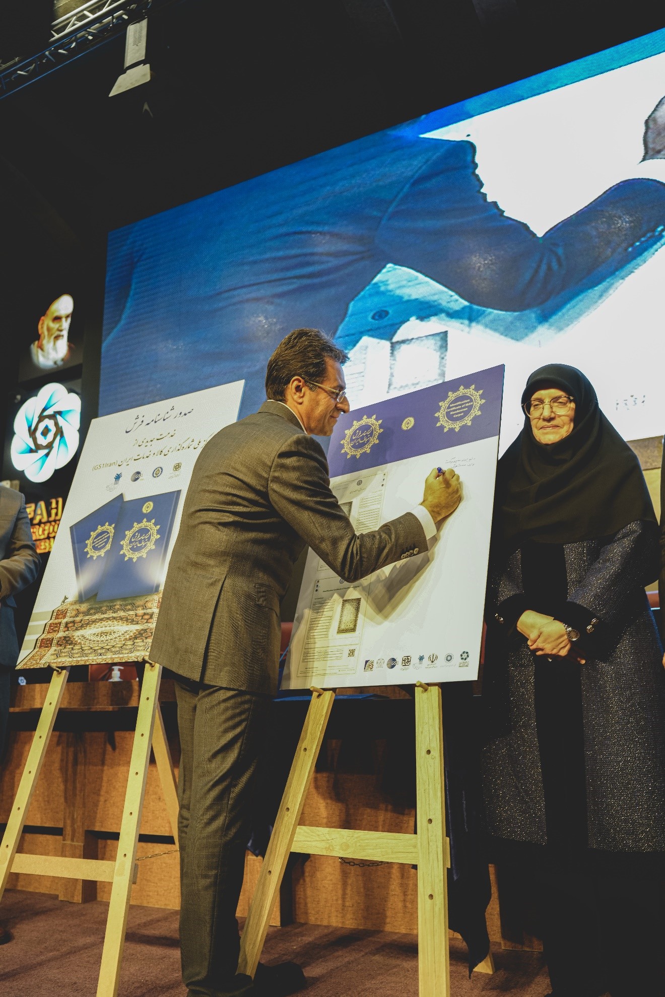 به گزارش روابط عمومی مرکز ملی شماره گذاری کالا و خدمات ایران، روز چهارشنبه مورخ 04/11/1402 در مراسم گشایش «بیست و ششمین نمایشگاه تخصصی-صادراتی فرش دستباف» همزمان با اختتامیه «دومین جشنواره ملی قالی فاخر» در سالن همایشهای اتاق بازرگانی اصفهان، «آیین رسمی شروع فعالیت کارگزاریهای صدور شناسنامه فرش دستباف» با حضور شاهین آذری مدیرکل صنعت، معدن و تجارت استان اصفهان، مژگان ایزدی رئیس کمیسیون گردشگری و صنایعدستی اتاق بازرگانی اصفهان، احمدرضا طحانیان مدیرعامل نمایشگاه های استان اصفهان، محمد نمکی زاده رئیس اتاق اصناف اصفهان، امیر کشانی رئیس اتاق اصناف اصفهان، ساعد عصاچی رئیس اتحادیه تولیدکنندگان فرش دستباف اصفهان، یاسر حنیفی معاون مرکز ملی فرش ایران، مهدی مظهری مدیرعامل مرکز ملی شماره گذاری و مجید نیک مهر عضو هیات مدیره مرکز ملی شماره گذاری برگزار شد.