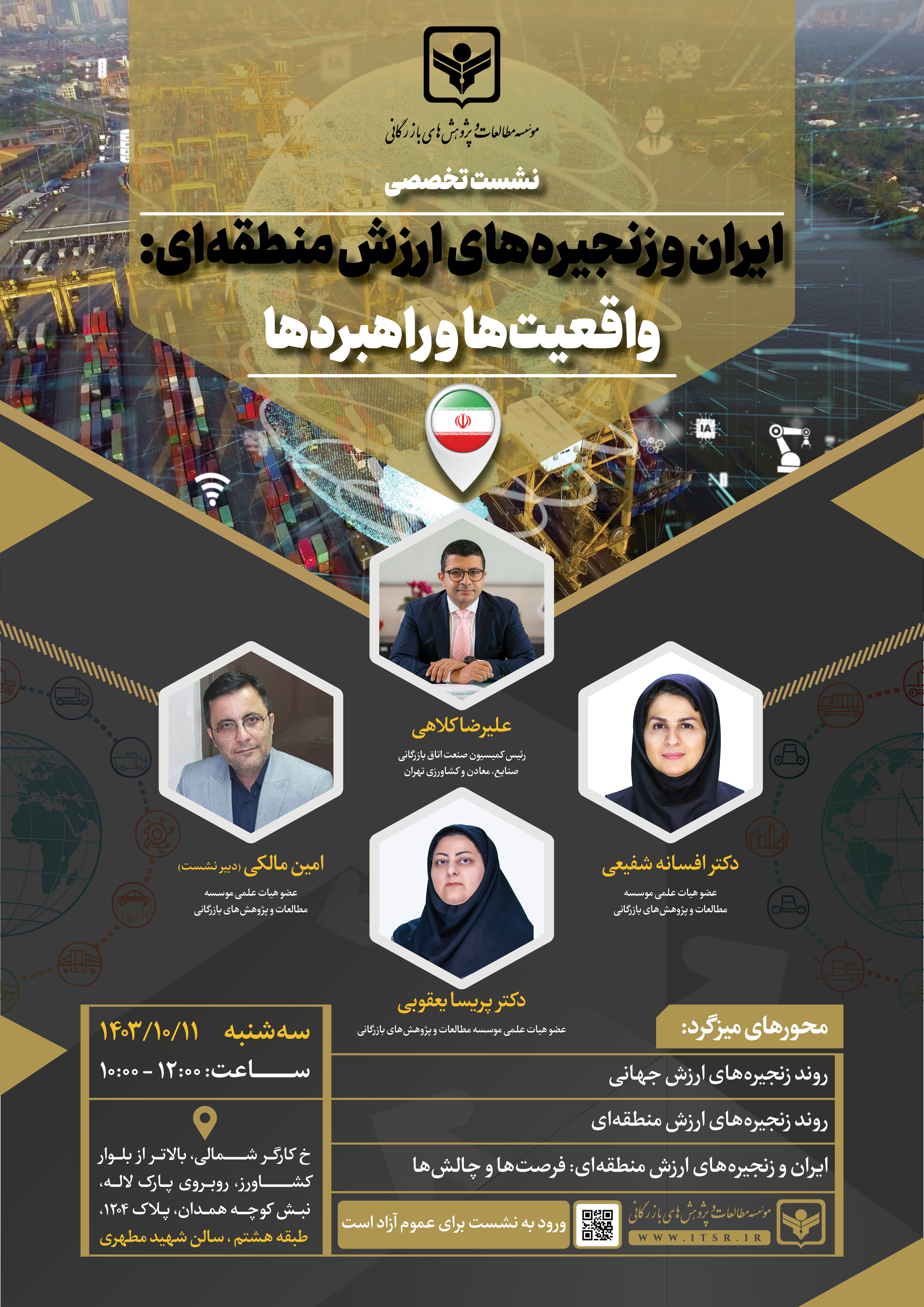 نشست تخصصی ایران و زنجیره های ارزش منطقه ای: واقعیت ها و راهبردها سه شنبه 11 دی ماه برگزار میشود