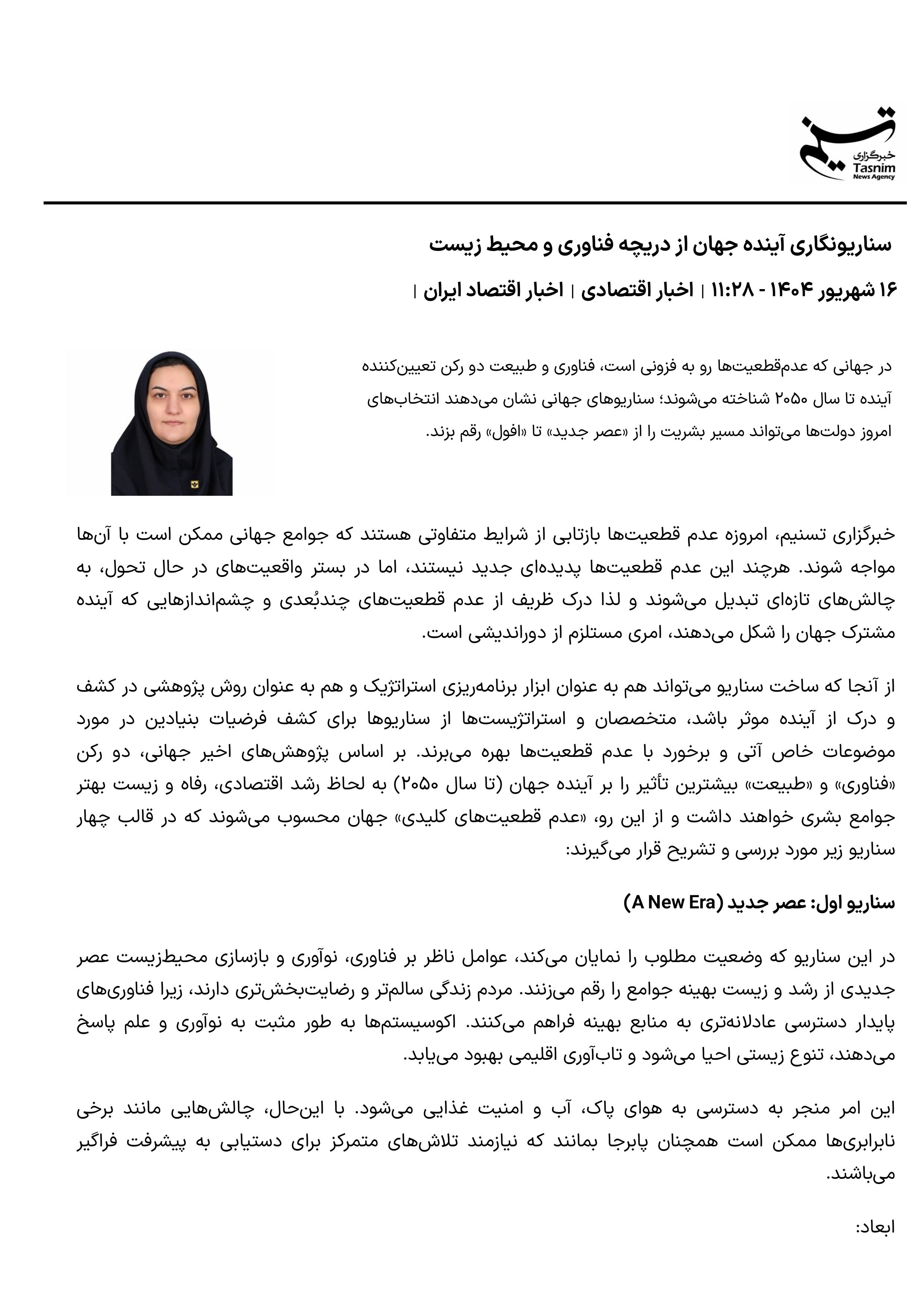 https://www.tasnimnews.com/fa/news/1404/06/16/3393657/%D8%B3%D9%86%D8%A7%D8%B1%DB%8C%D9%88%D9%86%DA%AF%D8%A7%D8%B1%DB%8C-%D8%A2%DB%8C%D9%86%D8%AF%D9%87-%D8%AC%D9%87%D8%A7%D9%86-%D8%A7%D8%B2-%D8%AF%D8%B1%DB%8C%DA%86%D9%87-%D9%81%D9%86%D8%A7%D9%88%D8%B1%DB%8C-%D9%88-%D9%85%D8%AD%DB%8C%D8%B7-%D8%B2%DB%8C%D8%B3%D8%AA