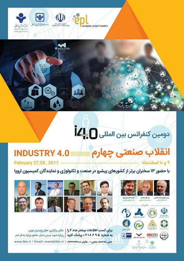 موسسه مطالعات و پژوهش های بازرگانی و مرکز آموزش بازرگانی، در راستای رسالت خود برای معرفی تحولات کلیدی که پیش روی صنعت و تجارت ایران، با همکاری شبکه راهبران پروژه های اروپایی (EPL) پس از برگزاری موفق اولین همایش چهارمین انقلاب صنعتی، دومین همایش را با حضور دوازده نفر از محققین برجسته در حوزه مربوطه در نهم و دهم اسفندماه 1395، در هتل اوین تهران برگزار می کنند.