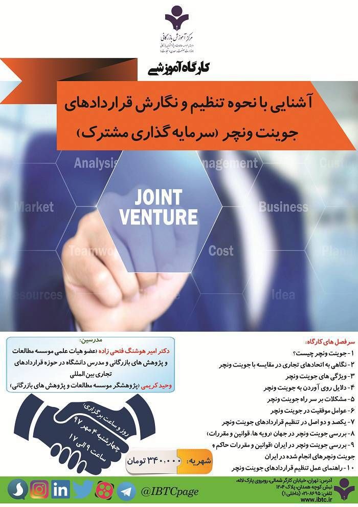 کارگاه اموزشی آشنایی با نحوه تنظیم و نگارش قراردادهای جوینت ونچر(سرمایه‌گذاری مشترک)