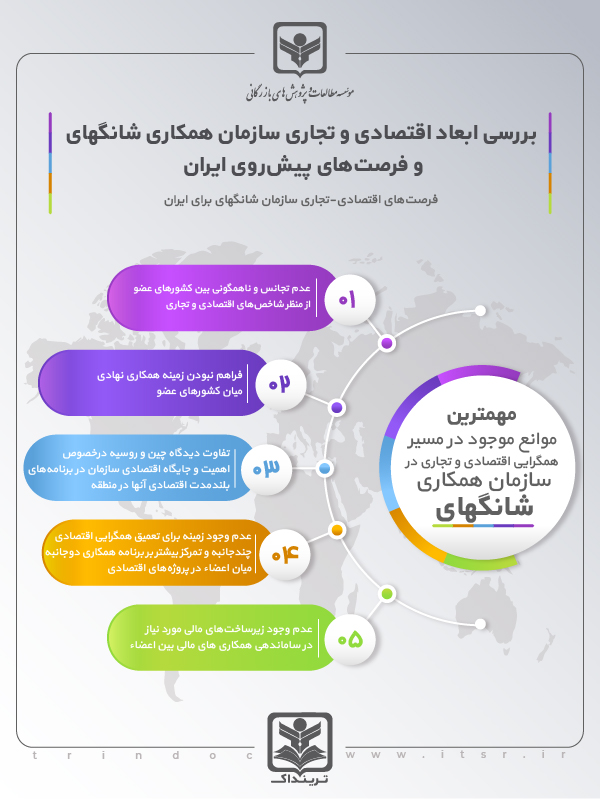 - مهمترین موانع موجود در مسیر همگرایی اقتصادی و تجاری در سازمان همکاری شانگهای عبارتند از: