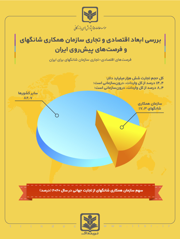- ظرفیتها و فرصتهای اقتصادی و تجاری سازمان همکاری شانگهای برای ایران با تاکید بر کنسرسیوم بین بانکی، ظرفیتهای حوزههای ترانزیتی و لجستیکی و تجارت انرژی (نفت، فرآوردههای نفتی و پتروشیمی)؛