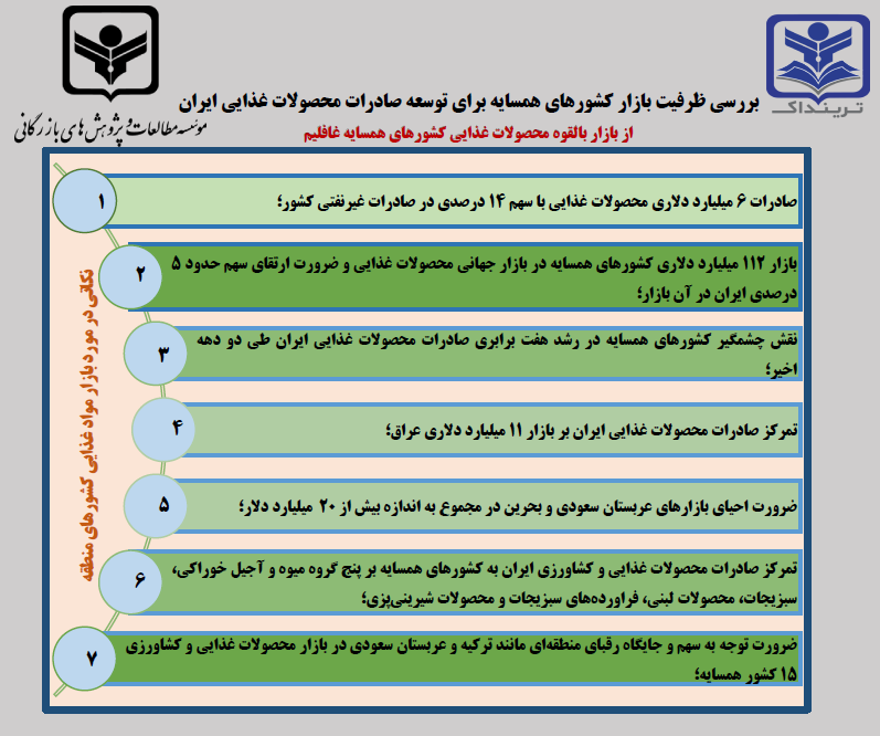 بررسی ظرفیت بازار کشورهای همسایه برای توسعه صادرات محصولات غذایی ایران